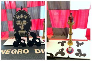 In conclusion, Cumbre Afro: The Negro Digs Up His Past for the Cumbre Afro-2025 Summit begins as a thesis born from my experiences in La Playa de Ponce, contrasted with the antithesis of the streets of El Barrio in New York City. My experiences collecting statuettes and magical objects in the local botánicas sparked the spiritual synthesis that shaped this altar. This work reflects on the civil rights movement, the commemoration of our ancestors, and the ongoing search for Afro-descendant identity. The figures of Elegüa, La Madama, and the transmigratory figurines riding bicycles symbolize the resilience of African heritage at cultural crossroads. Schomburg’s message, The Negro Digs Up His Past, continues to inspire us today, urging Afro-descendants to investigate, reclaim, and express our identities in various ways, socially, politically, spiritually, and artistically, as we continue this important journey into the 21st century.