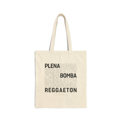 “Plena, Bomba, Reggaetón” Typographic Canvas Tote